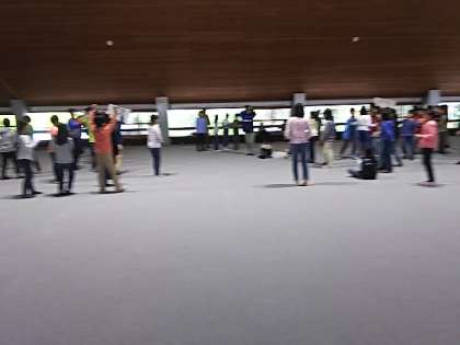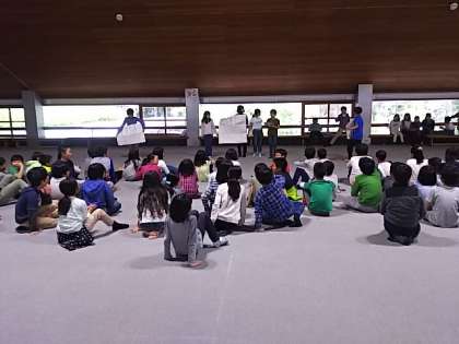 引き続き、村の会堂で、レクリエーション係を中心に、ゲーム「まる・ばつゲーム」やダンス、ジャンケンゲームなどをみんなで楽しみました。