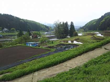 田んぼ、畑、人家が地形を利用して広がる様子が分かります。