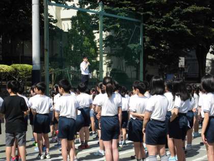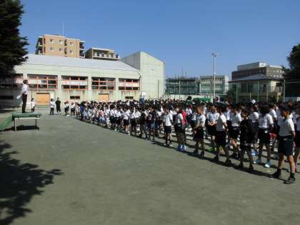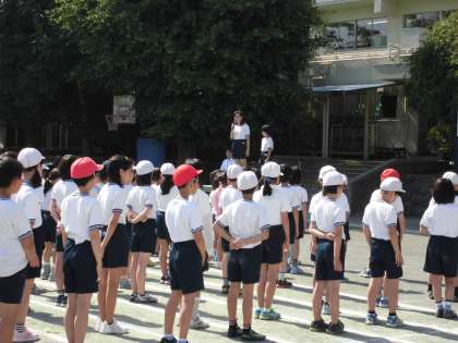 今週末には、運動会があります。そのせいか、本日の児童朝会に体育着に着替えて並ぶ児童の姿も多く見られました。本日の笹の子スピーチは、オランウータンの子の保護活動と植物油脂の関連、気温と太陽の関係でした。日常のちょっとしたことにも関心をもって調べてみることは大切ですね。