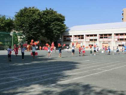 校庭では、応援団が応援合戦の仕上げの練習を、高学年リレーの赤チームが自主練習をしていました。