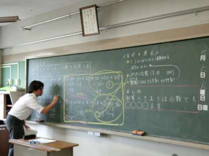 今日の1校時の算数学習室では、小数でも整数のかけ算やたし算と同じように、交換法則や結合法則が成り立つかどうか、自分で考えたり、みんなで考え意見交換をしながら、計算のきまりについて確かめていました。