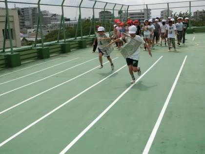 チャイムと同時に子どもたちが、校庭・体育館そして屋上の割り当ての場所に移動し、前半は、学級遊び・学年遊びなどを楽しみました。ゲームを楽しんだり、鬼遊びをしたり、子どもたちの歓声が学校いっぱいに響き渡っていました。