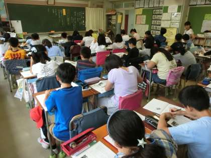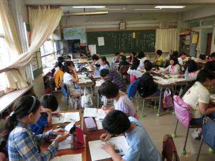 これまでに学んできた文章の分類を想起し、新しく随筆があることを知り、随筆とはどのような文章かつかみ、実際に随筆と出会い、イメージをつかむ活動に取り組んでいました。個人で考え、それをもとにグループで意見交換をし、全体でまとめながら随筆の特徴をつかむとともに、この単元の学習計画を立てていました。どのような随筆が書けるか楽しみです。