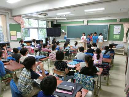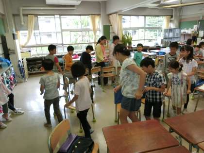今週の16日(金)3〜4校時に行われる「全校オリエンテーリング」へ向けて、活動内容や班の中のグループ分けの確認、自己紹介を通しての交流、最後に5年生グループと6年生グループごとで、室内遊び(ゲームなど)を楽しみました。