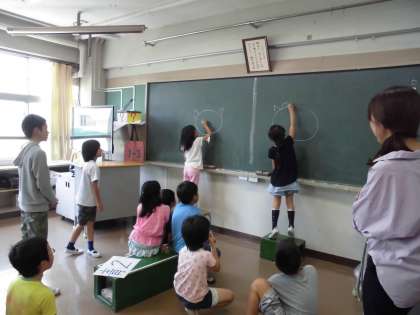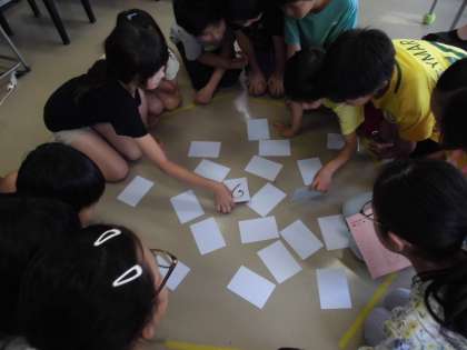 絵をかいたり、まとに当てたり。カードをめくったり。