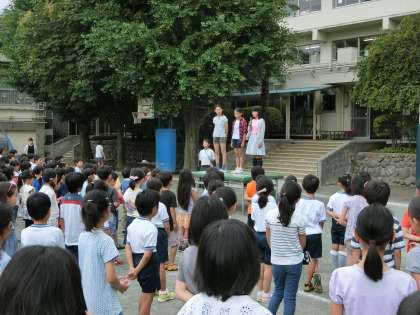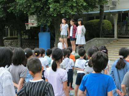 最後に看護当番から、今週の生活目標「次のことを考えて、物や場所を使おう!」が伝えられ、1週間の学校生活がスタートしました。