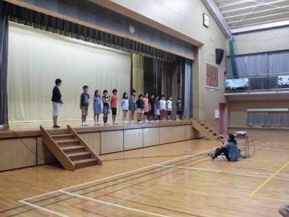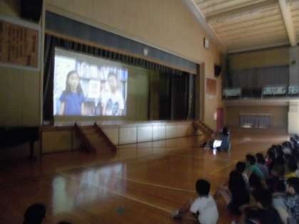 4年生が総合の時間に目の教室について調べたことを、全校に向けて発表しました。