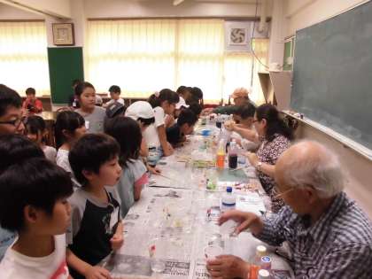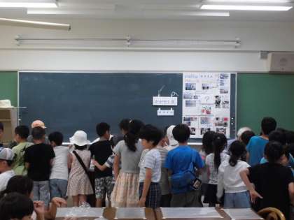 夏の集まれ広場関連行事として、「かがやく目」の主催によるスライム作りが行われました。丁寧にご指導いただき、大勢の子どもたちが自分だけのスライムを作っていました。とても楽しそうでした。