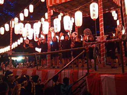 3年生と4年生の有志のみなさんが、宇山昭和会主催の納涼盆踊り大会のステージに出演し、運動会で発表した踊りを披露しました。力強く元気いっぱいの踊りに、たくさんの拍手をいただきました。笑顔いっぱい輝く子どもたちでした。
