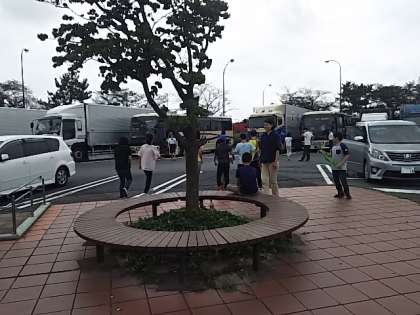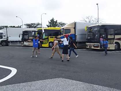 今日からの日程で世田谷区立小学校4校が2泊3日を日光で過ごします。パーキングエリアで顔合わせし、あいさつしました。