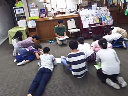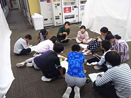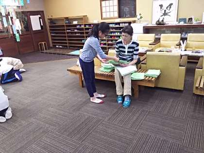 8時15分からロビーで、は行動班と生活班の班長会が行われています。これからのこと、明日の予定などの確認をしています。また、保健係が健康観察の報告をしています。外は雨が降っていますが、子どもたちは全員元気です。