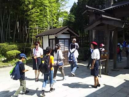 日光江戸村に着きました。入場手形を受け取り、昼食場所を確認して、行動班での活動に入りました。プログラムや案内地図を見ながら、村内を探索中です。