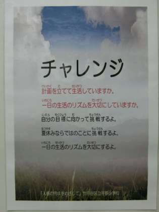 8月の「人格の完成をめざして」のテーマは、学校が独自に設定するテーマで『チャレンジ』です。写真は、今月のポスターです。