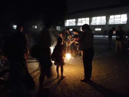 仕掛け花火の後は、子どもたち一人ひとりが手持ち花火を受け取り、