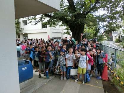 子どもたちが、学習用具や自由研究の作品などたくさんの荷物をもって、「おはようございます!」とあいさつをしながら、元気に登校してきました。友達と顔を合わせると、互いに会話が弾んでいました。