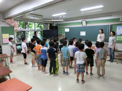 2年1組では、子どもたちがお話の展開を想像しながら、静かに聴き入っていました。2冊の本の紹介を受け、楽しいひとときとなりました。最後にしっかりとお礼のあいさつをしていた子どもたちです。