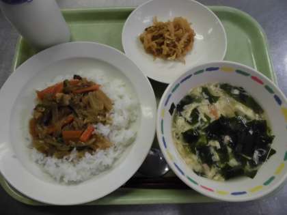 プルコギ丼は、韓国の伝統的な肉料理の一つです。日本で言う「すきやき」のようなもので、牛肉、野菜、春雨などを炒めて、甘辛く味付けをします。給食では、豚肉を使用しています。