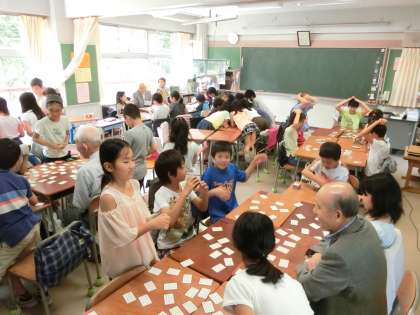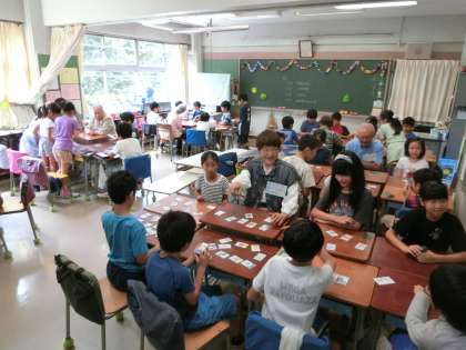 4年生の各教室に移動し、グループで百人一首をして楽しみました。