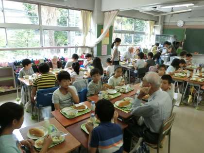 各グループに入っていただいた地域の方と話をしながら、百人一首を楽しみました。また、そのあと、一緒に給食を食べ、楽しい会話が弾んでいました。