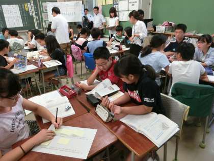今日の午後、6年2組で研究授業を行いました。単元名「事実と意見をおさえて、要旨をとらえよう」、説明文「『なべ』の国、日本」を使って学習する様子を参観し、授業後、図書館で研究協議を行いました。子どもたちは、今日の学習課題に向かって、一人ひとりが自分の考えをもつとともに、グループで意見を交換し合い、最後に全体でまとめをし、今日の学習を振り返っていました。意欲的に取り組む姿がたくさん見られました。