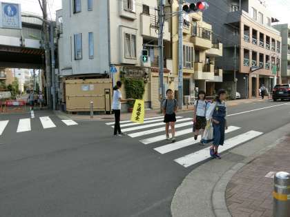 本校では、保護者の方々が、各地区班のポイントに立ち、横断歩道や交差点での安全を見守ってくださっています。また、子どもたちには各教室で、自転車の安全な乗り方や登下校時の安全な歩行・横断について指導・確認をしていきます。