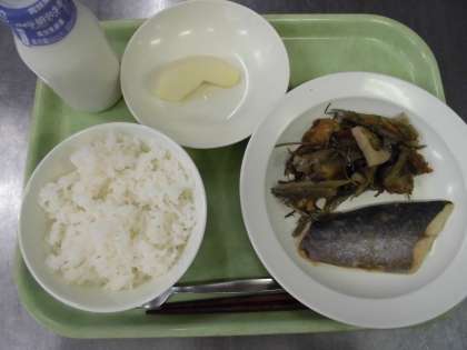 今日から10月の給食が始まりました。10月はじめの給食は、白米、魚に煮物という和食献立です。お米は日本人の食生活に昔から欠かせないものでした。税金がお米で支払われるほど、お米は大切なものなので、食べるときは心臓に近い左側に置くという習慣ができたとも言われています。おかずとご飯を交互に食べて、味のない白米でもしっかり食べられるようにしましょう。