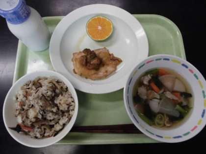 今日のみかんは菊花みかんと言います。みかんを横に切って見ると、菊の花のように 見えることからこう名付けられました。れんこんを横に切るとたくさん穴が開いていたり、オクラを横に切ると星型に見えたり、食べ物を切ってみるといろいろな発見があります。みなさんもいろいろな食べ物に興味を持ち、おもしろい発見をしてみてください。