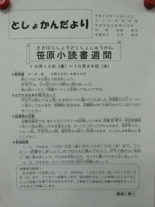 ☆家庭読書 1・2・3年<ファミリー読書>10月13日(金)〜19日(木)