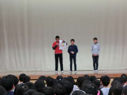 今日の6年生による笹の子スピーチは、「もみじについて」「ポテトチップスの歴史について」「機械式時計について」の3人のみなさんの発表でした。関心をもったこと・疑問に感じたことを、分かりやすく説明・発表でき、大きな拍手を受けていました。