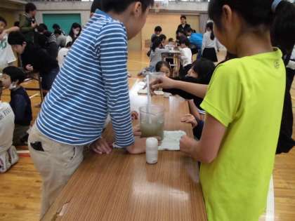 キャラバン隊の方が、わたしたちが飲んでいる水についてのお話をしてくださいました。また、高度浄水処理の実験もさせていただきました。子どもたちは、教科書で学習した内容をさらに深めることができました。