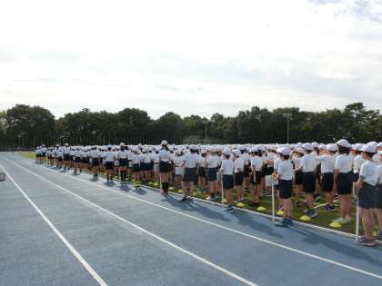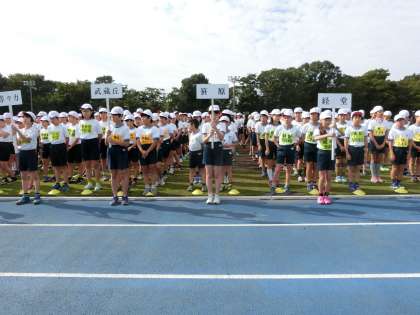 学校から徒歩で会場に入り、参加校全員が参加しての開会式、準備運動、エンジョイランニング(準備運動を兼ねたトラック走)に参加しました。