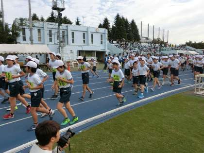 大きく広い陸上競技場で運動ができることで、子どもたちの意欲も一段と高まりを見せていました。
