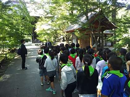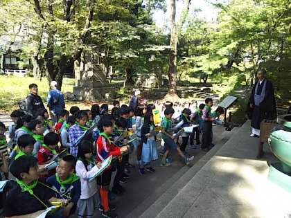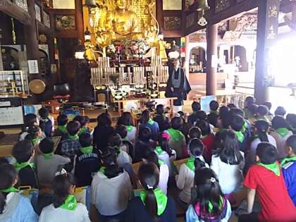 お寺の方に歴史や東京都の文化財などについて、詳しくお話を聴き、学習を深めています。