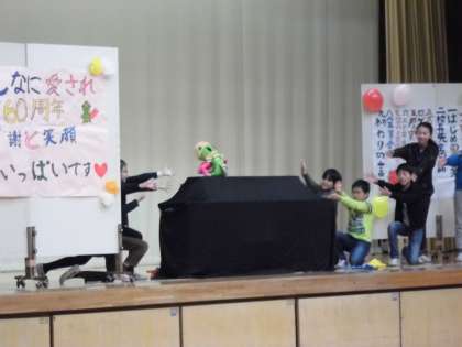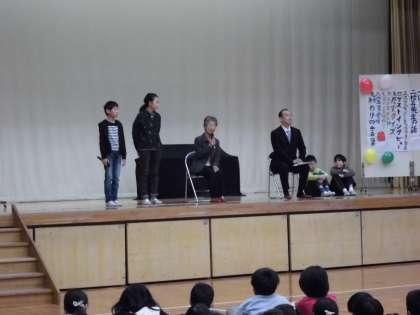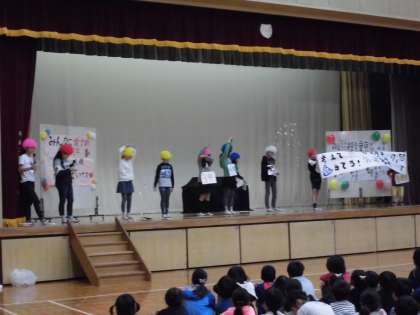 キャラクター発表、ゲストインタビュー(学校支援コーディネーター大下さん、おやじの会代表 寺内さん)、集会委員による笹原小歴史クイズです。ゲストのお話もしっかり聞き、クイズは笹の子班で楽しそうに行いました。