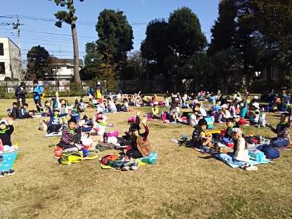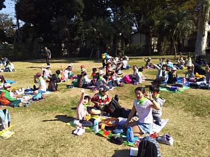 2年生と3年生のグループで、いっしょに食べています。お弁当のあとは、おやつも楽しみな子どもたち。笑顔いっぱいです。