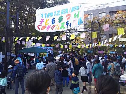 12時から桜丘区民センター内スペースで、「くまサクフェスティバル(桜丘児童館子どもまつり)」が始まりました。