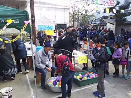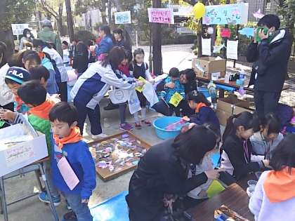 ステージでのオープニングに続き、たくさんのお店が一斉にオープン。笹原小学校新BOPからもお店が出店。笹原小学校の子どもが大活躍です。おやじの会他のコーナーでも賑わいを見せています。