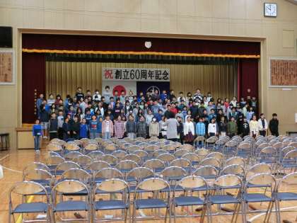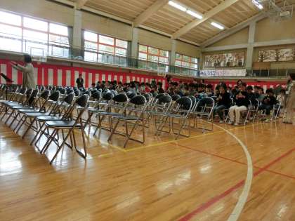 今日の2校時、創立60周年記念式典へ向けた練習を行いました。