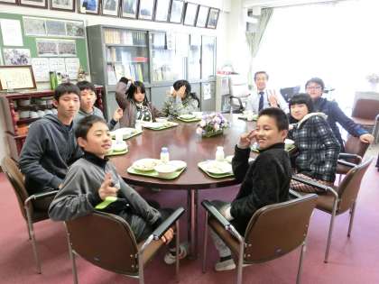 校長室会食会の2日目の様子です。1組と2組の8名が訪れました。