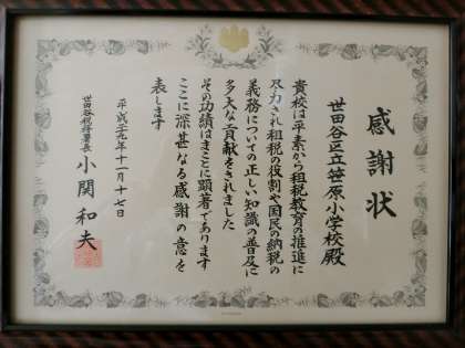 11月17日(金)に開かれた世田谷税務署による表彰式で、本校は「平成29年度 租税教育推進校感謝状」を受けました。長年にわたる租税教育への関与と普及への表彰です。ありがとうございました。