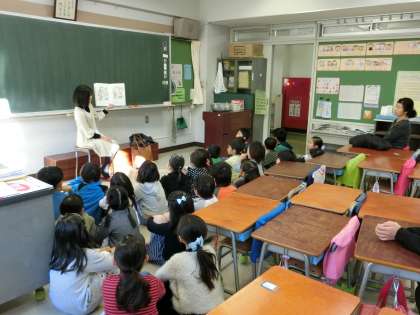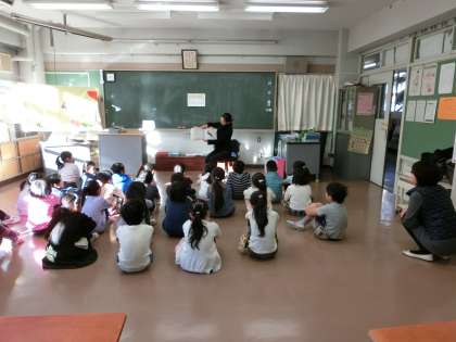 今日の朝読書の時間には、1年生の各学級で、お話しポケットの方による読み聞かせがありました。素敵な絵本の読み聞かせに、子どもたちは興味と関心をもち、静かに聞き入っていました。