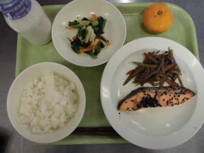 今日は「ビタミンの日」です。ビタミンとは、生き物が生きていくのに必要な栄養素で、体の中で使われる量はとても少ないですが、とても重要な働きをしています。ビタミンにはたくさんの種類があり、それぞれたくさん含まれている食材が違います。今日の給食に使われている食材には、どんなビタミンがたくさん含まれているでしょうか?鮭にはビタミンDという骨を作るのに必要なビタミンが、にんじんにはビタミンAという目の健康維持に必要なビタミンが、みかんにはビタミンCという肌の健康維持に必要なビタミンが多く含まれています。みなさんは、今日の給食をしっかり食べるだけでたくさんのビタミンを食べることができるのですね。