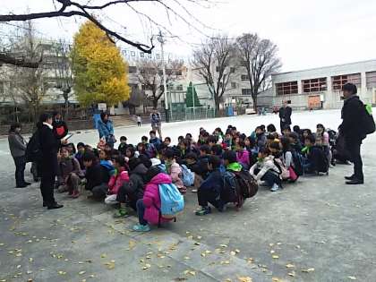 4年生は、先程、楽しみにしていた社会科見学に出発しました。