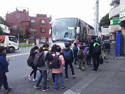 目的地は、浅草の浅草寺と仲見世、そして中央防波堤埋立処分場です。曇りがちの天候ですが、元気いっぱいの子どもたちです。