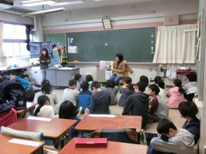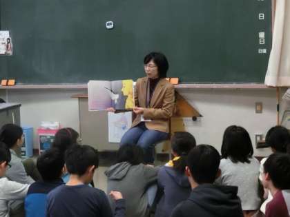 6年2組で、お話しポケットの方による読み聞かせがありました。