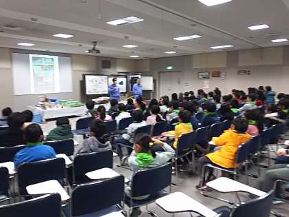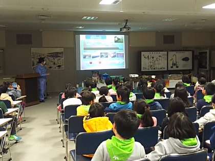 中央防波堤埋立処分場の学習センターで担当の方々から、中央防波堤埋立処分場の役割や埋立の仕組み、私たちの生活とゴミの関係などについて説明を受け、ゴミやその処理、これからの課題について学習を深めています。