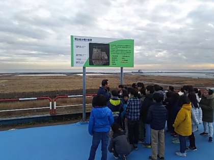 中央防波堤埋立処分場のゴミ処理施設やサンドイッチ方式の埋立地などを、車窓から、または展望台から見学しました。担当の方の丁寧な説明を受け、普段は見学ができない処分場・施設を詳しく知ることができました。
