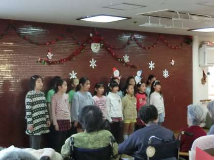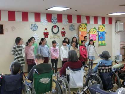 12月17日の日曜日、第2有隣ホームのクリスマス会に、笹原小の子どもたちが合唱を届けに訪問しました。