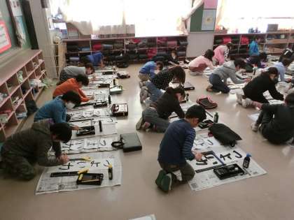 そろそろ、どの学年でも書き初め練習が始まっています。冬休み前に学校で練習し、冬休みに家でも練習、最後に学校で清書し、2月の書き初め展に掲示という流れとなります。