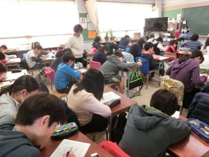 ちょっと覗いてみましたが、耳慣れない単語もあり、英語が苦手な私には、難しそうだなあと感じましたが、子どもたちは集中して取り組んでいました。